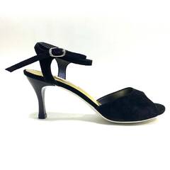 Чёрные замшевые босоножки ALSA Классика с каблуком 9 см, закрытой пяткой и коротким ремнём для стабильности в танго