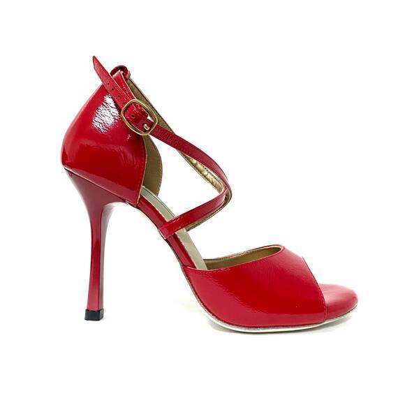 Босоножки ALSA Грация выполнены из гладкого лака, создающего стильный блеск и эффектный внешний вид. Каблук 9 см обеспечивает оптимальный баланс для аргентинского танго, помогает держать ось, облегчает пивоты и добавляет грацию и женственность движениям. Гибкая колодка повторяет контуры стопы, а подошва с ворсом гарантирует сцепление с паркетом