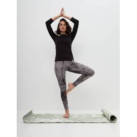 Оптимальная длина до середины бедра и приталенный крой помогают лонгсливу надежно удерживаться на месте: он не задирается при наклонах, растяжках и перевернутых асанах. Рукава длиной 7/8 оставляют запястья свободными, что особенно удобно в динамичных комплексах. А изящная горловина «лодочка» подчеркивает линию шеи и ключицы.