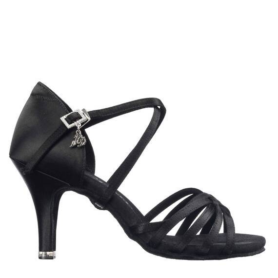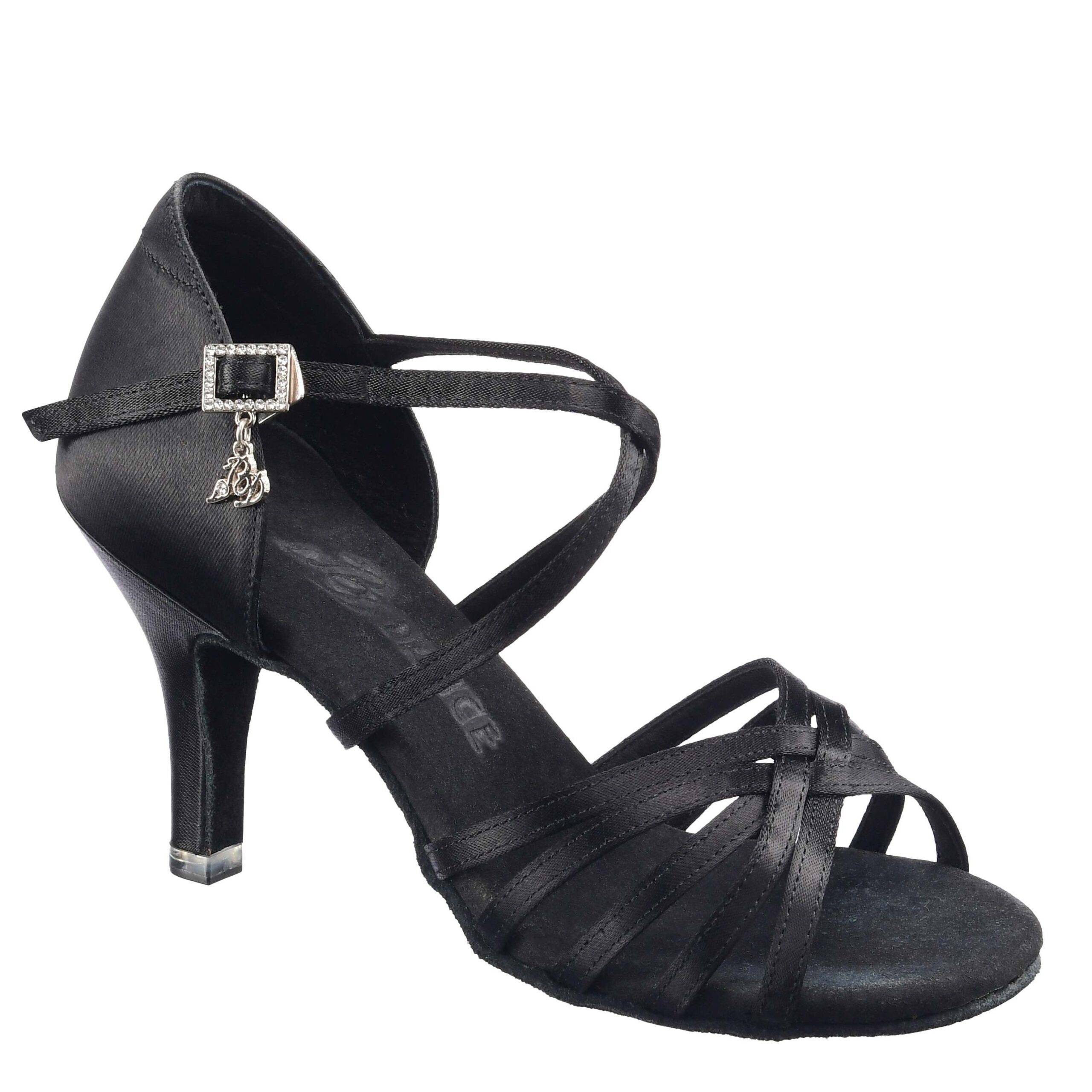 Женские туфли BD Dance 216 разработаны для латиноамериканской программы спортивных бальных танцев. Модель выполнена из гладкого сатина глубокого чёрного цвета, который придаёт образу элегантность и выразительность на паркете. Союзка образует изящное переплетение тонких ремешков, мягко фиксирующих стопу и подчёркивающих линию подъёма. Подошва из натуральной замши обеспечивает лёгкое скольжение и надёжное сцепление при вращениях. Каблук высотой 8,5 см формы Slim визуально удлиняет ногу и создаёт изящный силуэт. Укороченный супинатор и гибкая конструкция подошвы делают обувь удобной для интенсивных тренировок и выступлений. Лаконичная модель BD Dance 216 сочетает комфорт, стабильность и сценическую эстетику.