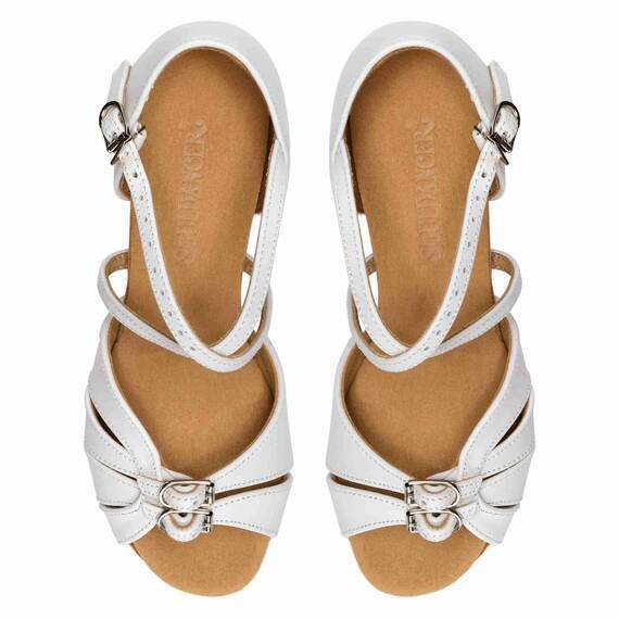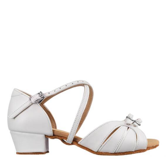 Туфли детские для девочки модель 609 сатин фирмы Souldancer для занятий спортивными бальными танцами для девочки с замшевой подошвой для лучшего сцепления с паркетом. Цвет белый.