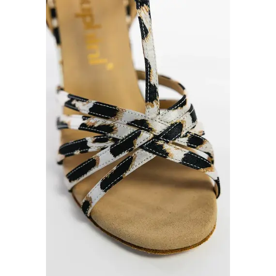 Женские босоножки для латиноамериканской программы разработаны для стабильной работы стопы, чёткого контроля и выразительного сценического образа. Классическое плетение с T-образным ремешком обеспечивает надёжную фиксацию подъёма, помогает удерживать баланс и уверенно выполнять динамичные элементы латины. Такая конструкция поддерживает стопу при быстрых сменах направления и активной работе корпуса.