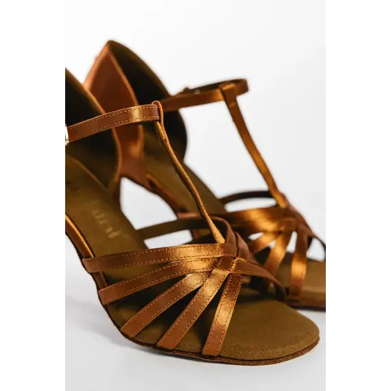 Женские босоножки для латиноамериканской программы разработаны для стабильной работы стопы, чёткого контроля и выразительного сценического образа. Классическое плетение с T-образным ремешком обеспечивает надёжную фиксацию подъёма, помогает удерживать баланс и уверенно выполнять динамичные элементы латины. Такая конструкция поддерживает стопу при быстрых сменах направления и активной работе корпуса.