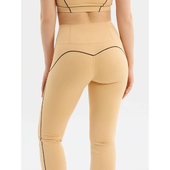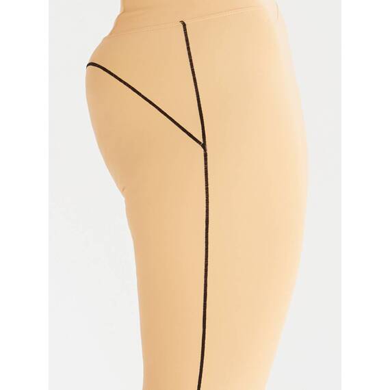 Контрастные чёрные линии выступают не только как стильный акцент, но и как инструмент визуальной коррекции: они проходят вдоль боковых швов и по заднему рельефу, подчеркивая изгибы тела и делая формы более выразительными.