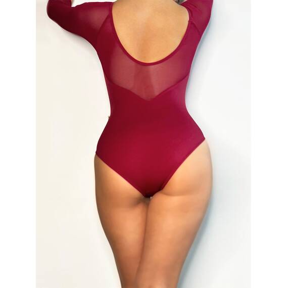 Купальник с открытой спиной и рукавами из сетки бордовый