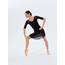 Купальник оснащен укороченными рукавами из эластичной сетки, обеспечивающей свободу движений и комфорт во время тренировок. Аккуратный круглый вырез красиво акцентирует линию шеи и плеч, а открытая спина с V-образной гипюровой вставкой добавляет образу выразительности.