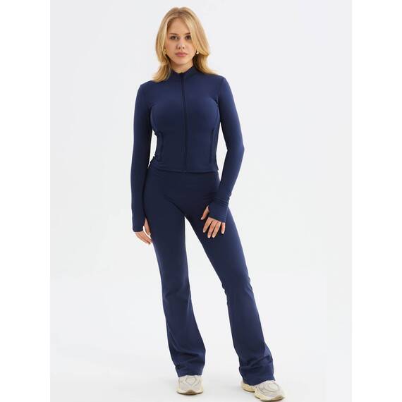 Приталенный силуэт выгодно подчеркивает фигуру, а укороченная длина делает образ стильным и актуальным. Высокий ворот и молния обеспечивают дополнительное удобство — вы можете регулировать уровень вентиляции во время занятий. Длинные рукава с отверстиями для большого пальца надежно фиксируются и не сползают при движении.