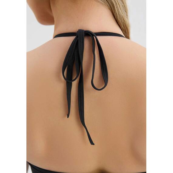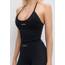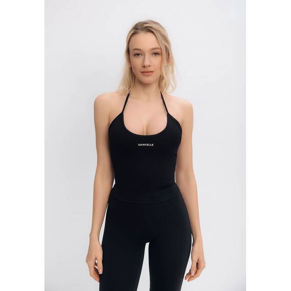 Топ имеет V-образный вырез и регулируемые завязки на шее, которые подчеркивают линию плеч и создают изящный силуэт. Открытая спина добавляет образу женственности и делает модель особенно привлекательной для занятий танцами, йогой или фитнесом.