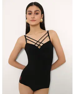 Яркое боди для танцев от бренда Primabella с перекрестными бретелями на спине. Эластичная ткань, идеальная посадка и эффектный дизайн для сцены и тренировок.