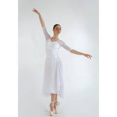 Длинная белая шифоновая юбка на запах (82 см) для балета и танцев. Плотный непрозрачный материал, универсальный размер, комфорт и свобода движений.