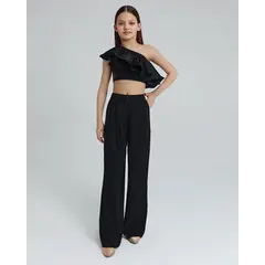 Черные брюки для латиноамериканской программы Classic Latin с манжетами и широким поясом на талии.