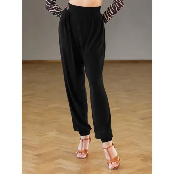 Брюки для латиноамериканской программы Classic Latin с манжетами и широким поясом на талии. Элегантно сидят по фигуре и обеспечивают комфорт даже во время самых интенсивных упражнений. Используются так же для занятий бачатой, сальсой и другими танцевальными стилями, требующие легкость и подвижность ткани и придания скорости движениям танцора. Отлично сочетаются с топами и боди бренда Primabella.