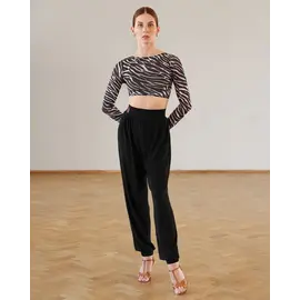 Брюки для латиноамериканской программы Classic Latin с манжетами и широким поясом на талии. Элегантно сидят по фигуре и обеспечивают комфорт даже во время самых интенсивных упражнений. Используются так же для занятий бачатой, сальсой и другими танцевальными стилями, требующие легкость и подвижность ткани и придания скорости движениям танцора. Отлично сочетаются с топами и боди бренда Primabella.