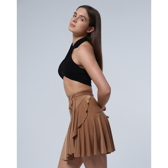 Топ-хомут оснащен бесшовными вшитыми чашечками на мягкой сетчатой подкладке, формирующими аккуратные и элегантные линии груди. Наличие подкладки снижает трение ткани о кожу и обеспечивает дополнительный комфорт даже во время интенсивных движений.