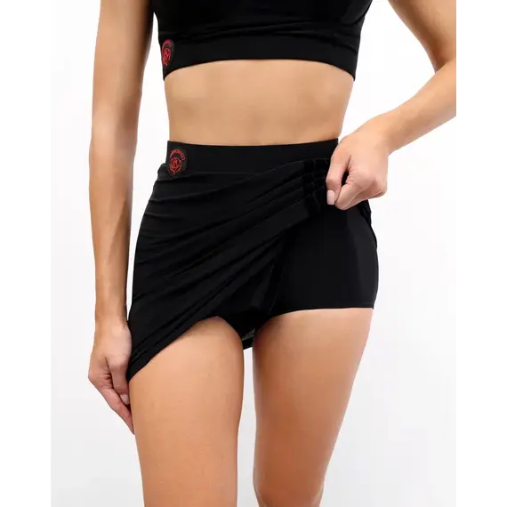 Элегантная черная мини-юбка для латины от бренда PRIMABELLA создана для тех, кто ценит стиль, грацию и уверенность на паркете. Акцентный вырез по ноге и бархатные лампасы добавляют изысканности и зрелищности движений, подчёркивая динамику танца. Мягкий эластичный материал не сковывает движения, легко стирается, не мнётся и быстро высыхает, сохраняя форму и насыщенный цвет. Юбка плотно садится на талию и не имеет застёжек, обеспечивая комфортную посадку и свободу движений.