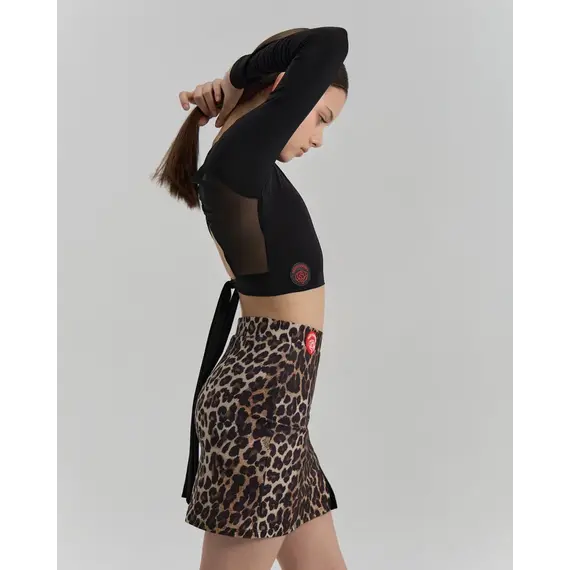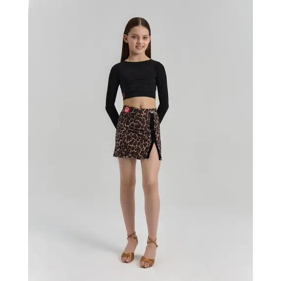 Элегантная и яркая детская мини-юбка для латины от бренда PRIMABELLA создана для юных танцовщиц, которые хотят выделяться на тренировках и выступлениях. Яркий фирменный леопардовый принт с логотипом бренда, вырез по ноге и бархатная отделка делают образ стильным и динамичным. Мягкий и супер эластичный материал не сковывает движения, легко стирается, не линяет и быстро сохнет, обеспечивая комфорт при любой активности. Вшитые непросвечивающие трусики позволяют безопасно и уверенно выполнять любые танцевальные фигуры.