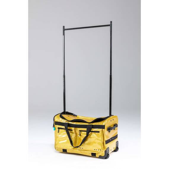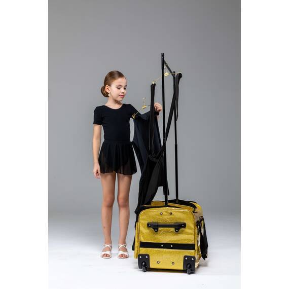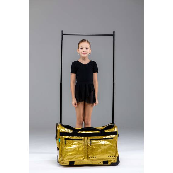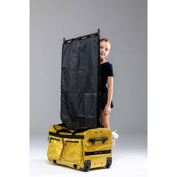 Инновационная складная система с телескопическими штангами позволяет за несколько секунд разложить встроенную вешалку и превратить сумку в мобильную гардеробную. Конструкция надежно фиксируется в корпусе и не требует дополнительной сборки. В комплект входит компактная ширма, которая крепится на штангу и обеспечивает приватность даже в ограниченном пространстве — в гримерке, за кулисами или в раздевалке.