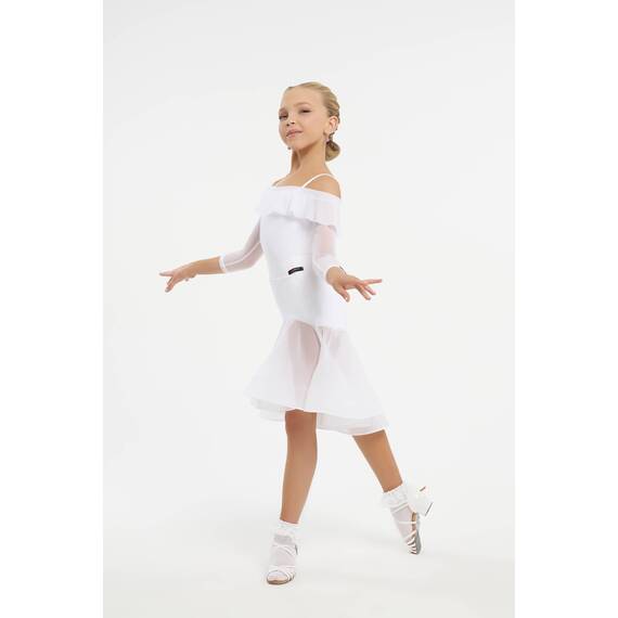 Особым акцентом служит изящная вставка из тонкой сетки в зоне ключиц — она добавляет образу воздушности, визуальной утончённости и создаёт лёгкий декоративный эффект без перегрузки дизайна.