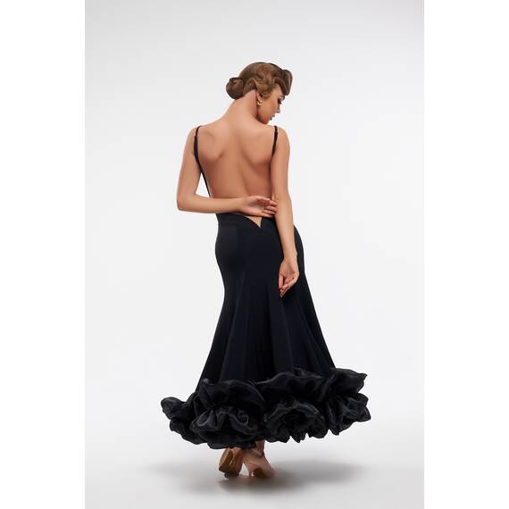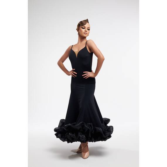 Воздушный волан из премиальной органзы добавляет образу динамики и элегантного объёма, подчёркивая красоту движения. Вшитые чашки обеспечивают дополнительный комфорт и стабильность, что особенно важно при активной тренировке или репетиции.