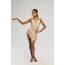 Аккуратные геометричные вырезы визуально вытягивают силуэт и изящно подчеркивают линию груди.