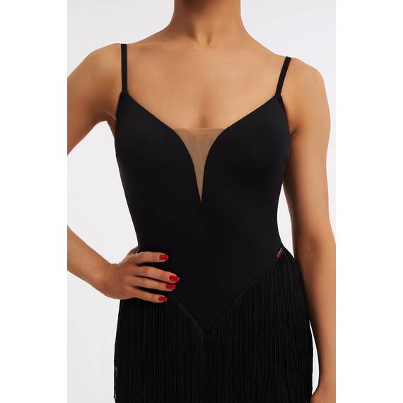 Элегантное черное танцевальное платье с бахромой Savich создано для тех, кто живет в ритме танца. Изготовлено из плотного, но мягкого трикотажа, оно идеально садится по фигуре, подчеркивая женственность и грации.