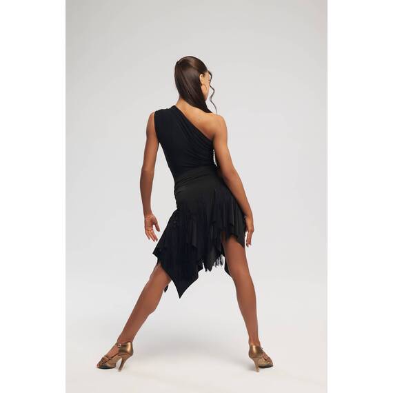 Декоративные рваные элементы и удлинённая бахрома «лапша» создают выразительную динамику в движении, усиливая пластику и визуальный ритм танца. Продуманная форма платка сконструирована таким образом, чтобы визуально вытягивать силуэт, удлинять ноги и подчёркивать линию талии, придавая образу лёгкость, стройность и женственность.