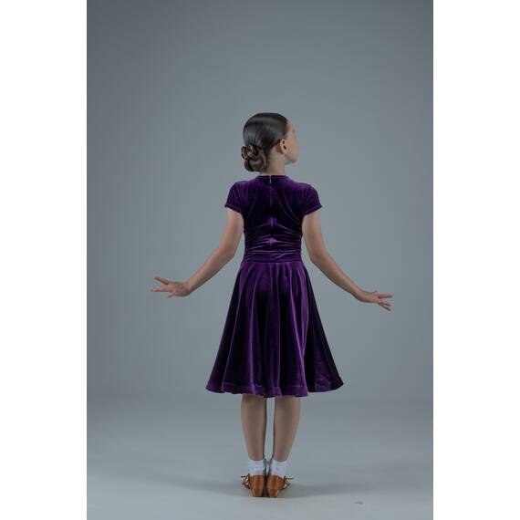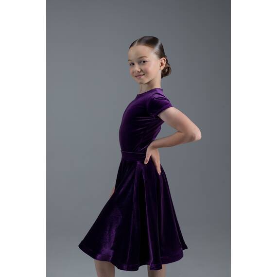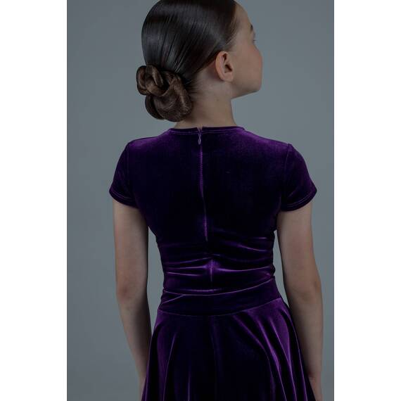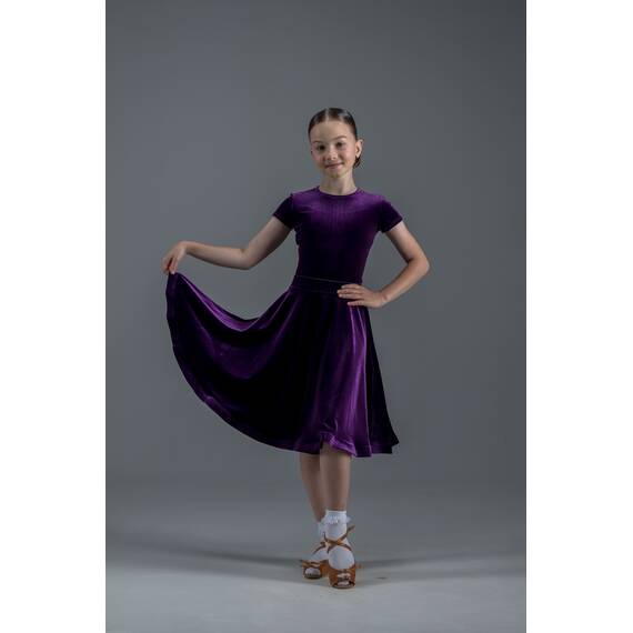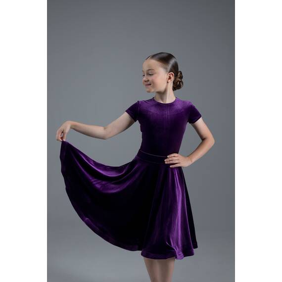 Темно-сиреневое рейтинговое танцевальное платье «Профи», состоящее из двух элементов, создано для эффектных выступлений и уверенного выхода на паркет. Комплект включает бархатный купальник и пышную юбку-солнце, которые вместе формируют выразительный и динамичный образ.