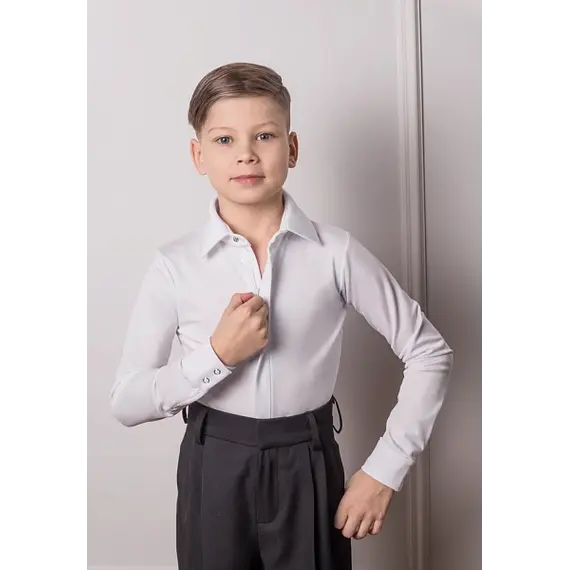 Рейтинговая бальная рубашка «Фокстрот» — отличный выбор для танцоров, стремящихся к уверенным выступлениям и комфортным тренировкам. Модель разработана с учетом потребностей юных спортсменов: она обеспечивает свободу движений и аккуратную посадку на фигуре.