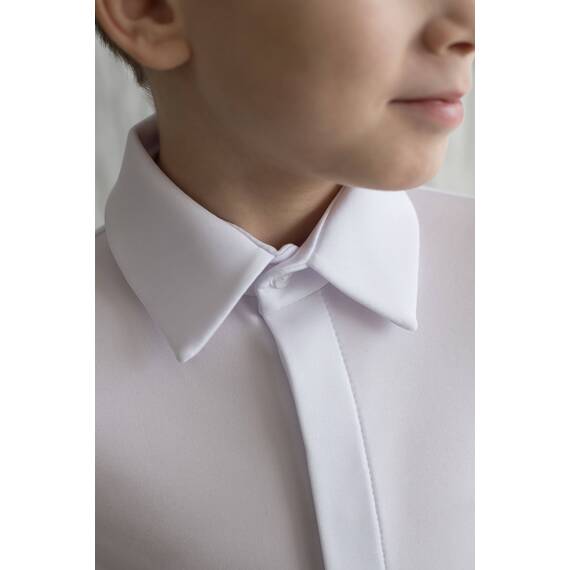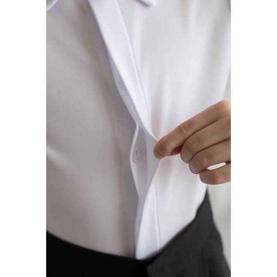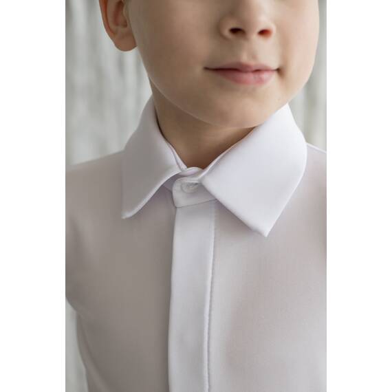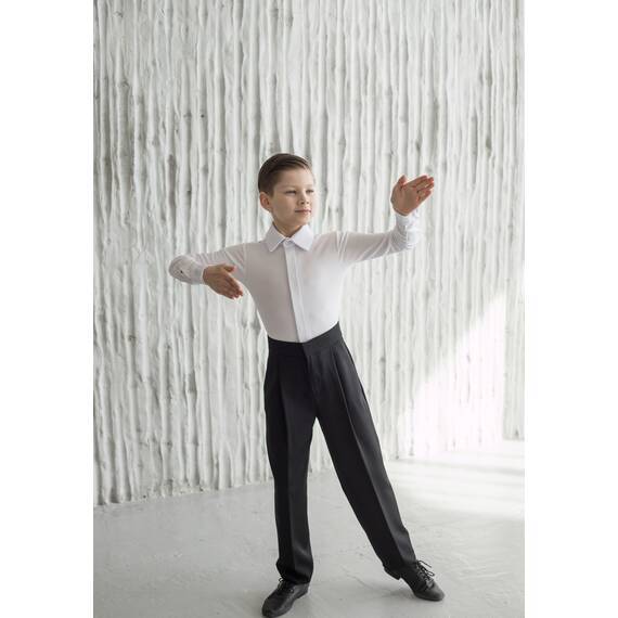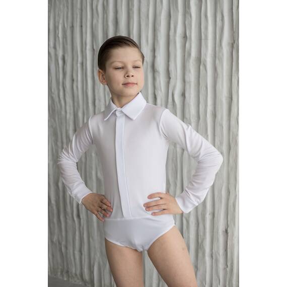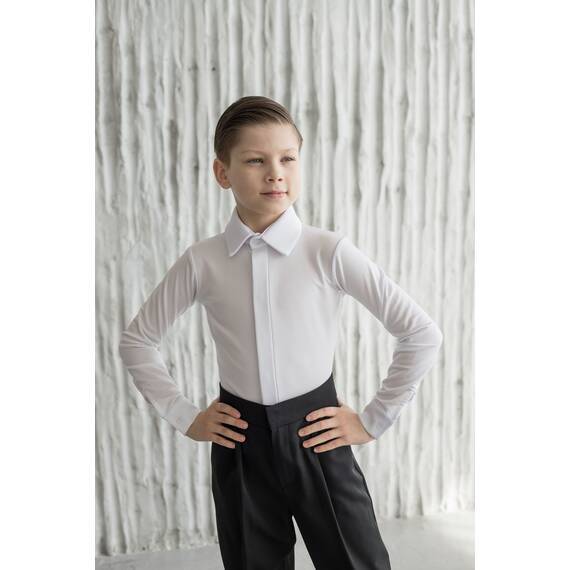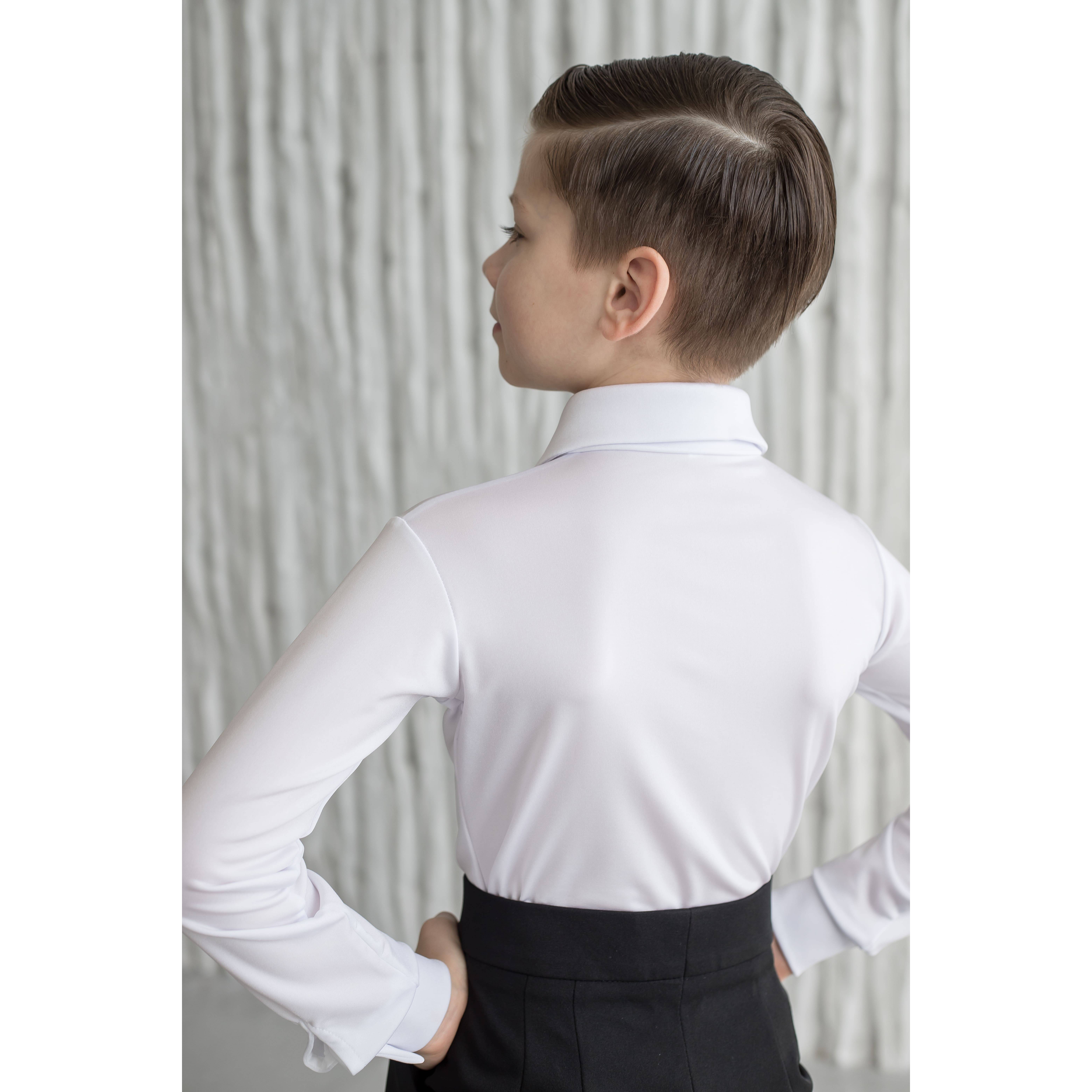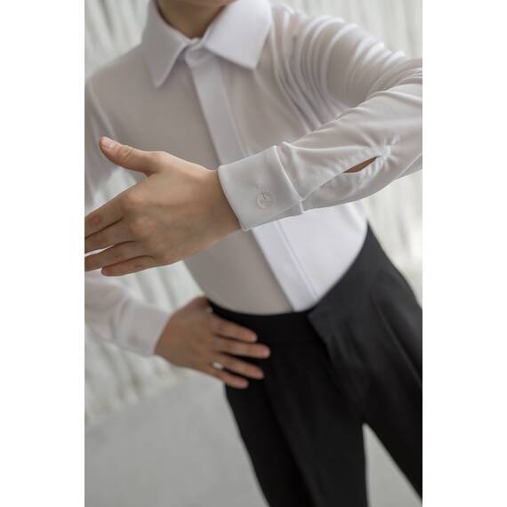 Рубашка сохраняет форму даже при интенсивной эксплуатации и частых стирках, не теряет внешний вид и комфорт. Матовая текстура придает изделию благородный и аккуратный вид на паркете, а классический белый цвет подчеркивает эстетику стандартной программы и делает образ выразительным и сценически чистым.