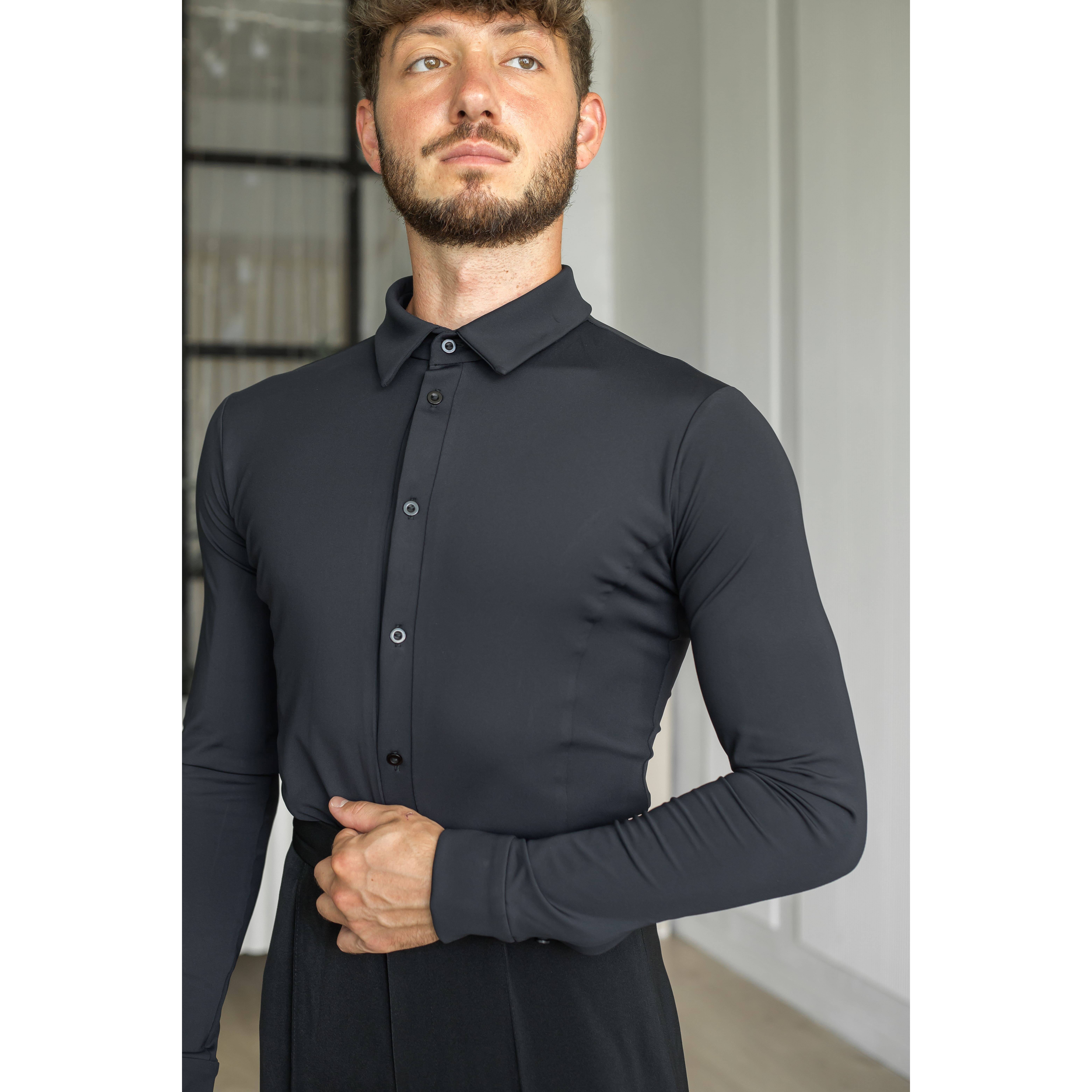 Мужская бальная рубашка Montréal — функциональная и стильная модель для танцоров, которым важны комфорт, практичность и выразительный внешний вид. Она отлично подходит как для регулярных тренировок, так и для выступлений на паркете.
