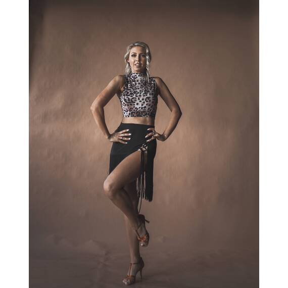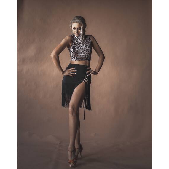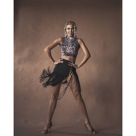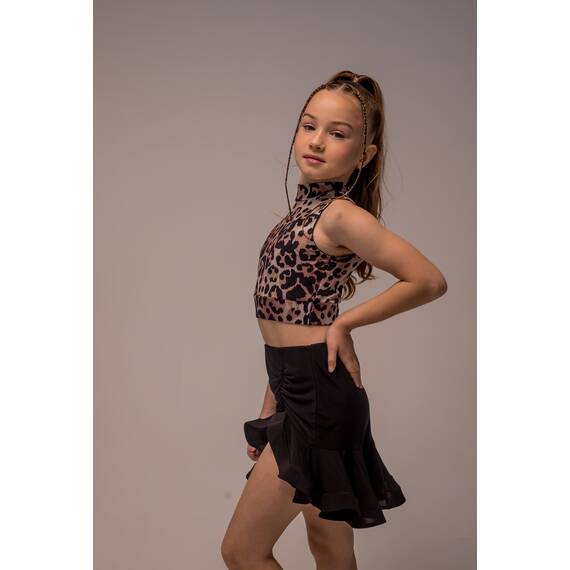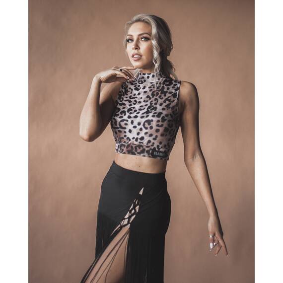 Танцевальный топ с леопардовым принтом — эффектный элемент гардероба для тренировок и выступлений, который поможет создать яркий и запоминающийся образ. Модель изготовлена из качественного бифлекса — прочного, эластичного и приятного к телу материала, который отлично тянется и сохраняет форму даже при интенсивных нагрузках.