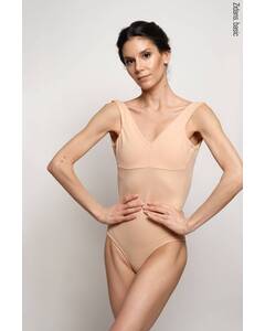 XXS (12-14 лет)  Дизайн.  Бежевый открытый балетный купальник на широких лямках. Треугольный вырез спереди и со спины, комфортная широкая лямка 4 см. Углубленная форма проймы. Лиф и спинка купальника дополнены подкладкой. Бежевое боди с открытой спиной и глубоким вырезом. ...