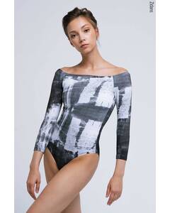 Дизайн.  Закрытый купальник с длинным рукавом. Рукав 3/4. Минимум швов — максимум комфорта. Модель подчеркивает линию шеи и груди, не оставляя без внимания кисти. Принтованное боди с длинным рукавом. Авторский принт "Мазки асфальта". Расположение принта на изделиях случайно и...