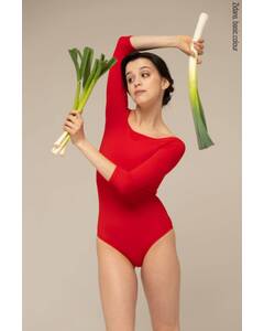 Дизайн.  Красный балетный купальник с коротким рукавом реглан и воротником-стойкой на молнии, которая дает вам выбор — застегиваться или расстегиваться. Это боди на молнии также можно носить как купальник. Подкладка спереди гарантирует плотную фиксацию груди и не просвечивает....