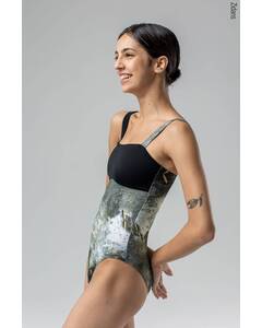 Дизайн .  Купальник на лямках, балетный купальник без рукавов. Цветовой акцент на контрастную лямку. Повторение линии груди, открытые лопатки. Принтованное боди на лямках. Авторский принт "Грязь московская — не отмывается". Открытый купальник на бретельках. ...