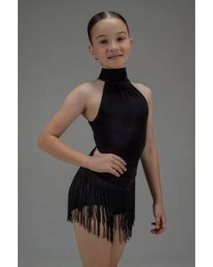 Стильный черный купальник для танцев с открытой спиной, сеткой и гипюровыми вставками. Обеспечивает комфорт, поддержку и свободу движений во время тренировок и выступлений.