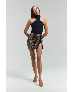 Мини-юбка для латины PRIMABELLA в леопардовом принте с бархатной отделкой и вырезом по ноге. Эластичная ткань и идеальная посадка для свободы движений на паркете
