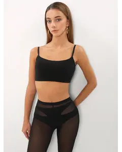Черный женский топ PRIMABELLA с бесшовными чашечками и регулируемыми бретелями. Эластичный материал, не теряющий форму, быстро сохнет и приятен к телу.
