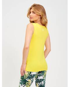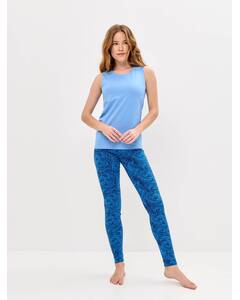 Женская светло-голубая майка для йоги ANGAMI из хлопка с эластаном. С вшитым топом-бра, поддерживающим грудь. Комфортная, дышащая, не просвечивает и не задирается при движении. Идеальна для спорта и повседневной носки.