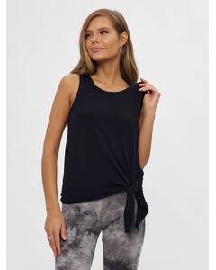 Удобная и дышащая черная топ-майка из вискозы для йоги и спорта. Мягкий материал, стильный узел на талии и комфортная посадка для максимальной свободы движений. Сделано в России.