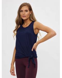 Удобная и дышащая темно-синяя топ-майка из вискозы для йоги и спорта. Мягкий материал, стильный узел на талии и комфортная посадка для максимальной свободы движений. Сделано в России.