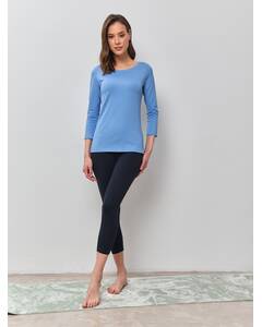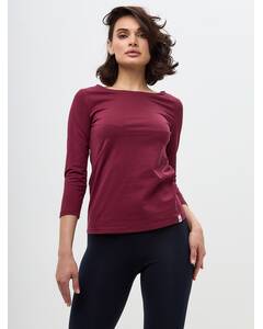 Комфортный женский лонгслив из хлопка с эластаном для йоги и фитнеса. Приталенный силуэт, длина до середины бедра, рукав 7/8 и аккуратная горловина «лодочка». Мягкий, эластичный, не раздражает кожу и не задирается в движении.