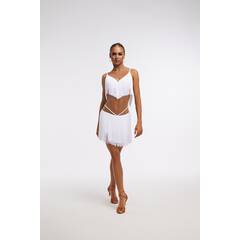 Плотное белое трикотажное платье с вшитым купальником и бахромой. Анатомичный крой, регулируемые бретели и идеальная посадка для латиноамериканских танцев.
