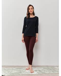 Комфортный женский лонгслив из хлопка с эластаном для йоги и фитнеса. Приталенный силуэт, длина до середины бедра, рукав 7/8 и аккуратная горловина «лодочка». Мягкий, эластичный, не раздражает кожу и не задирается в движении.