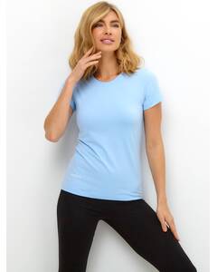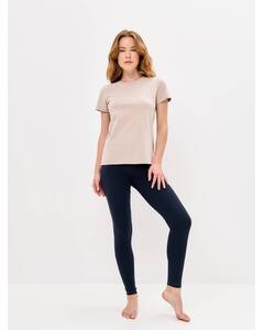 Комфортная женская футболка из хлопка с эластаном, идеально подходящая для йоги и спорта. Приталенный крой, удобная длина и лаконичный брендовый дизайн обеспечивают свободу движения и стильный вид.