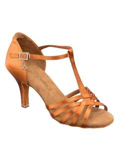Модель BD Dance 2387 для латино-американской программы бальных танцев: Женская латина Сатин Бронзовый цвет Каблук 85 мм «Слим» Замшевая подошва