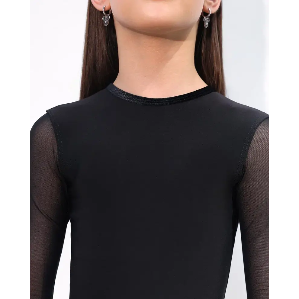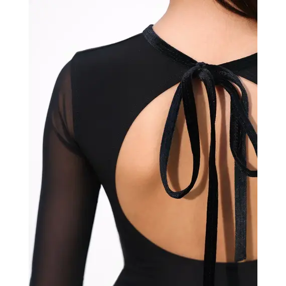 Изящный крой подчёркивает линии тела, а эластичная ткань позволяет двигаться свободно и красиво. Завязки на спине добавляют нотку утончённости, а длинный рукав делает образ элегантным и выразительным.