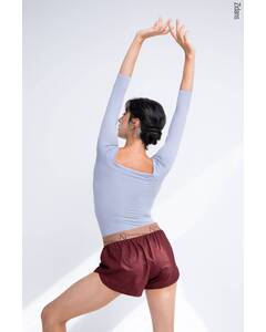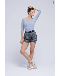 Дизайн.  Шорты короткие с заниженной посадкой на бедрах, визуально напоминают профессиональную спортивную форму — шорты-марафонки, легкие и невесомые. Эти качества позволяют не отвлекаться на одежду и полностью сосредоточиться на репетиции. Предназначены для повседневных занятий в...