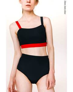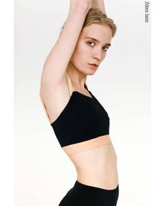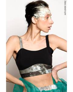 Дизайн.  Черный спортивный топ на лямках. Упругая лямка изготовлена на специализированном оборудовании. Деталь лифа спереди дублируется подкладкой из бифлекса. Топ для плавания, топ для танцев, верх купальника, спортивный бра.  Материал.  Итальянский бифлекс —...