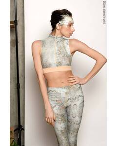 Дизайн.  Бежевый спортивный кроп топ на молнии. Плотно прилегающий крой ощущается, как вторая кожа, с лёгким эффектом пуш-ап. Молния с контрастным пуллером. Бежевый закрытый верх купальника. Топ на молнии для танцев.  Материал.  Итальянский бифлекс — эластичный,...